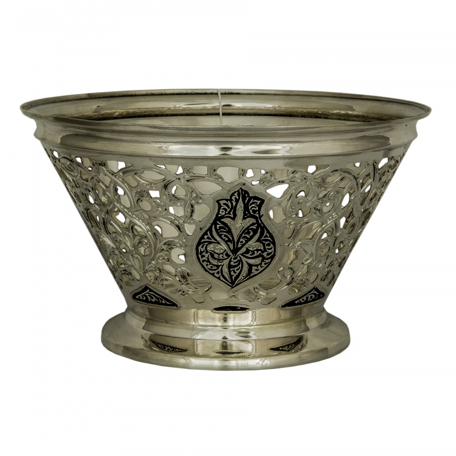 Серебряная конфетница. Гравировка, чернь. Стоимость изделия может меняться в зависимости от массы изделия.