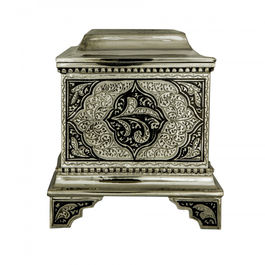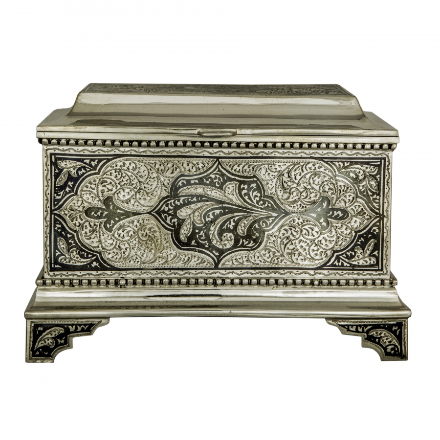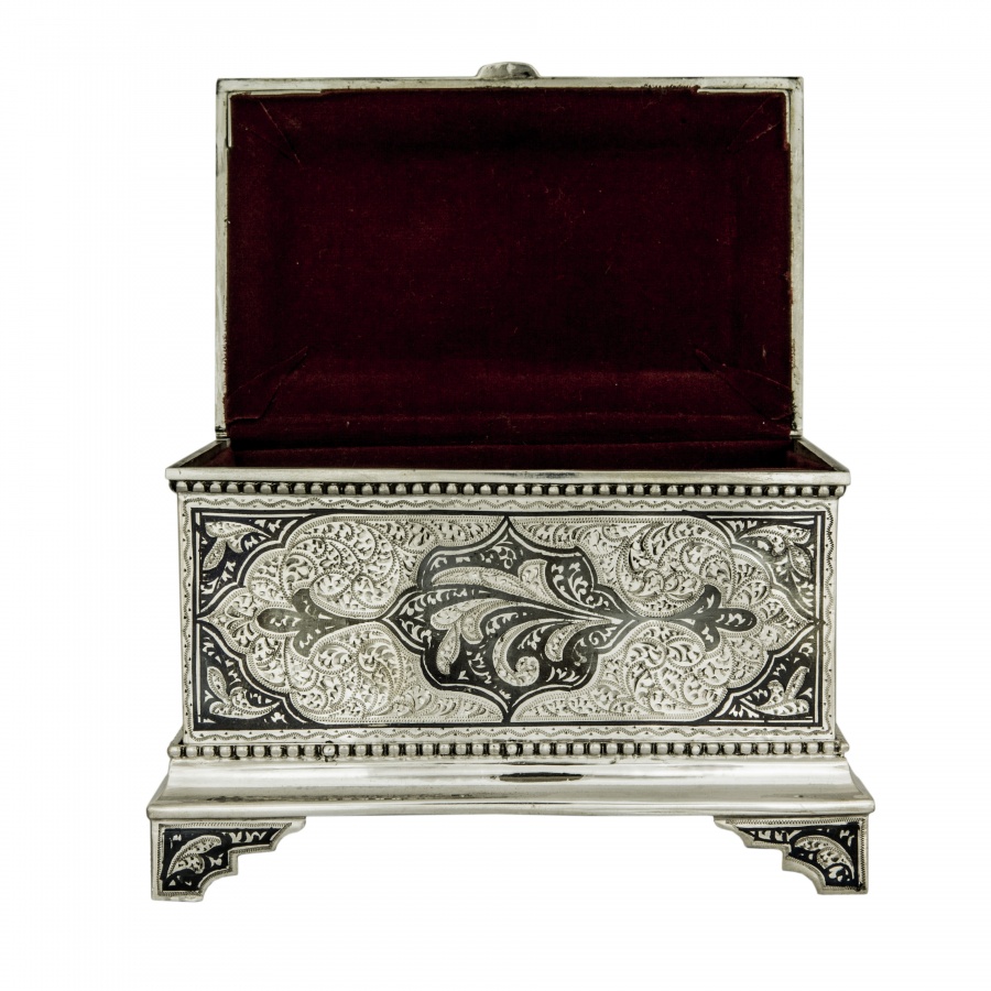 Серебряная шкатулка. Гравировка, чернь. Стоимость изделия может меняться в зависимости от массы изделия.