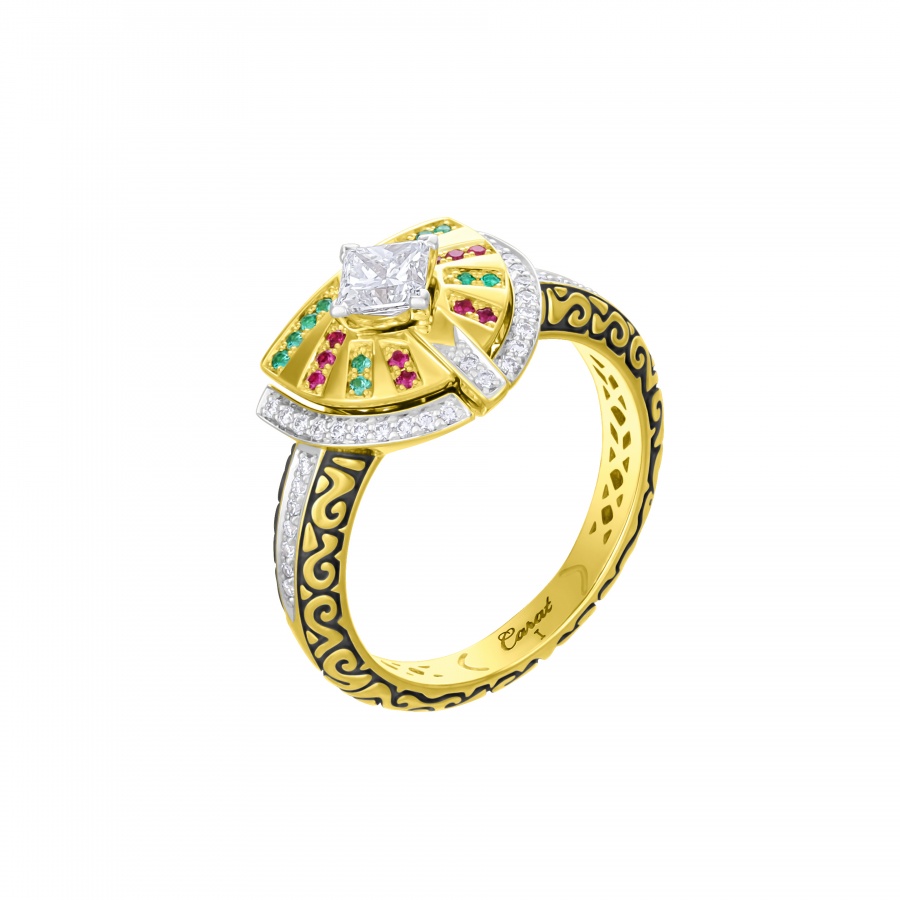 Кольцо «Веер» из коллекции «Петергоф» навеяно ассоциациями убранства Верхнего сада императорской резиденции. Украшение передает атмосферу царства вечного праздника и создает образ яркого цветника, раскинувшегося недалеко от Большого дворца. Прикоснитесь подлинным произведениям ювелирного искусства из коллекции в Государственном музее-заповеднике «Петергоф» или у наших партнеров.