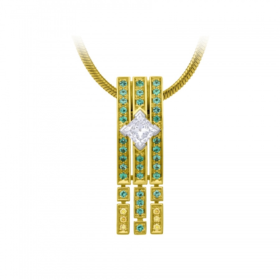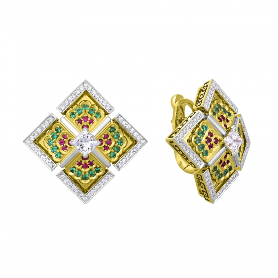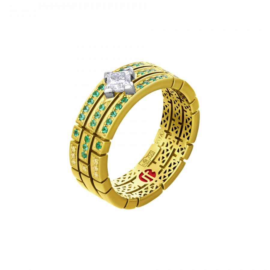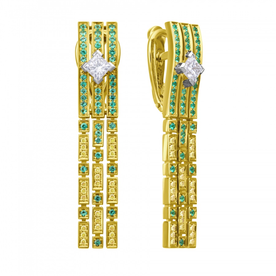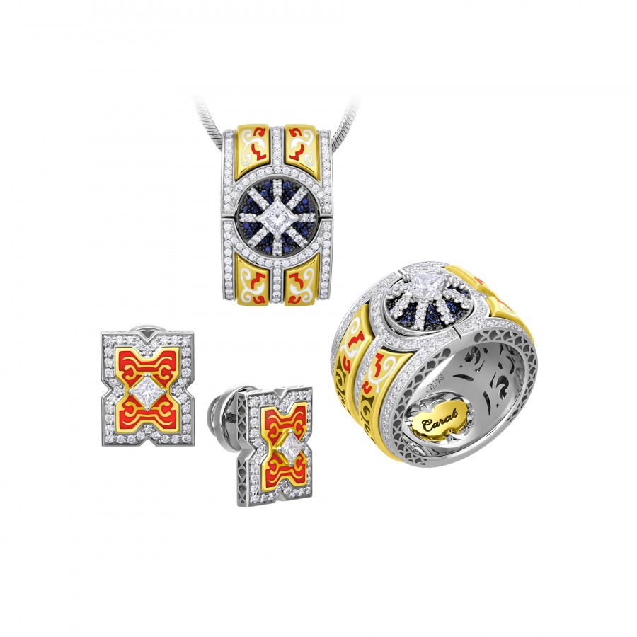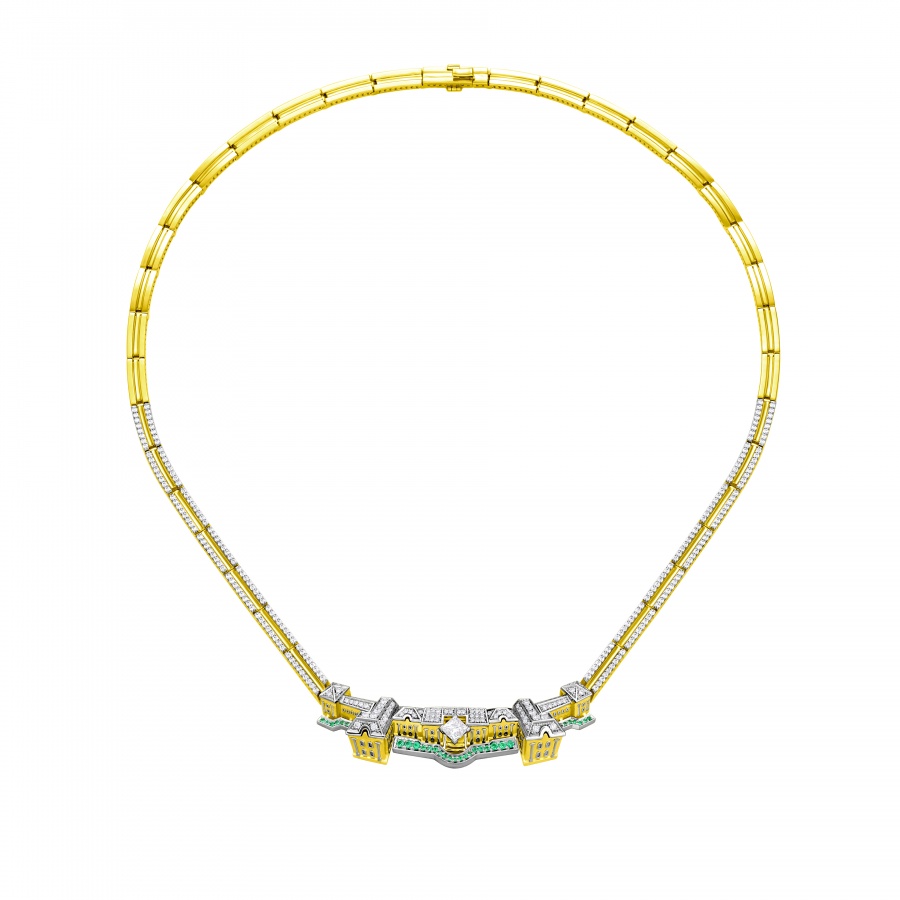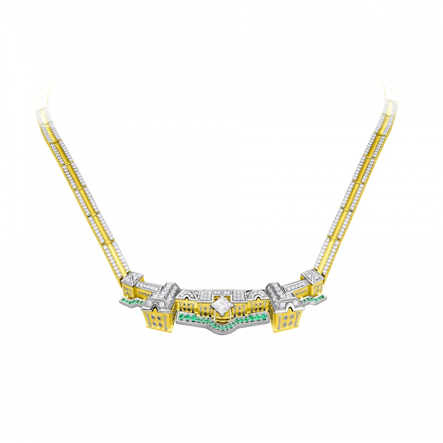 Коллекция "Петергоф", созданная CHAMOVSKIKH jewellery house и ювелирным холдингом JF Carat, включает в себя 20 ювелирных украшений, изготовленных из золота 750 пробы и драгоценных камней: бриллиантов, изумрудов сапфиров, рубинов и фантазийных бриллиантов желтого цвета. Коллекция исполнена в 11 экземплярах, один из которых будет постоянно экспонироваться в Государственном музее-заповеднике "Петергоф". Один из 11 экземпляров вы можете приобрести у нас в магазине.